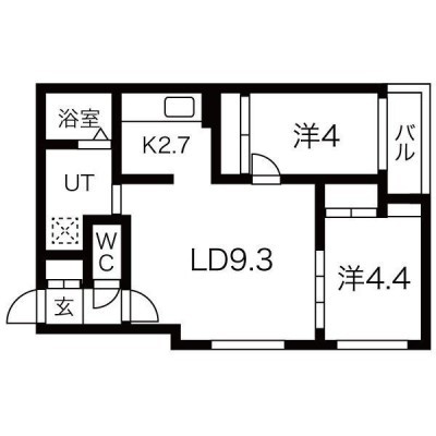 2LDK(45.31m²)└ LDK12帖 洋室4.4帖 洋室4帖