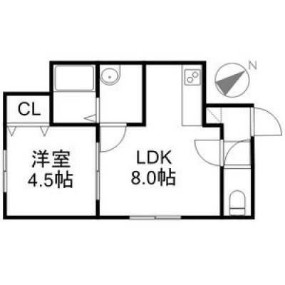 1LDK(29.57m²)└ LDK8帖 洋室4.5帖 / LDK8 洋室4.5