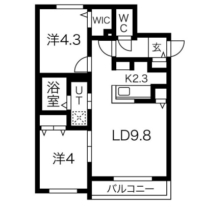 2LDK(45.03m²)└ LDK12.1帖 洋室4.3帖 洋室4帖
