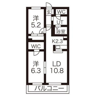 2LDK(52.46m²)└ LDK13.1帖 洋室6.3帖 洋室5.2帖