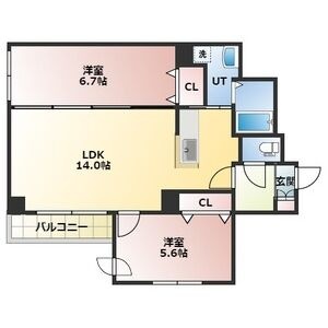 2LDK(55.6m²)└ LDK14帖 洋室6.7帖 洋室5.6帖
