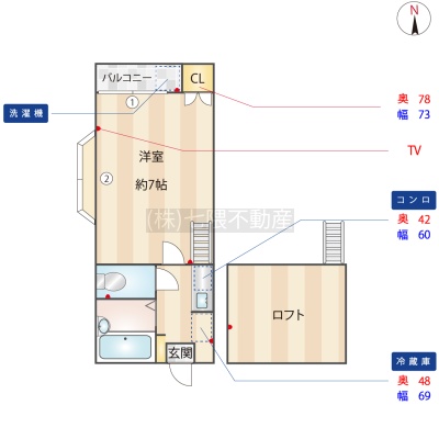 1K(17.5m²)└ 洋室7帖
