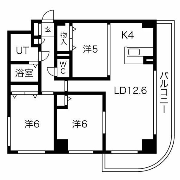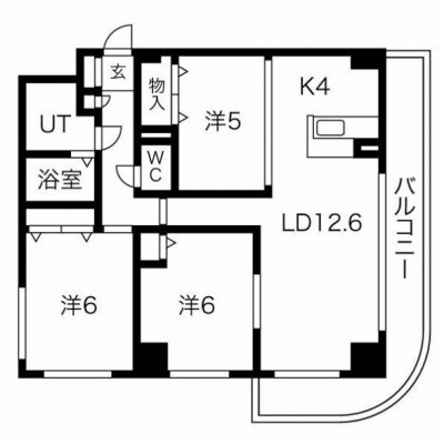 3LDK(71.16m²)└ LD12.6帖 K4帖 洋室6帖 洋室6帖 洋室5帖