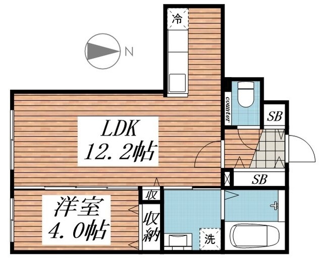 1LDK(40.39m²)└ LDK12.2帖 洋室4帖