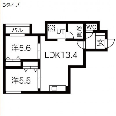 2LDK(57.19m²)└ LDK13.4帖 洋室5.6帖 洋室5.5帖