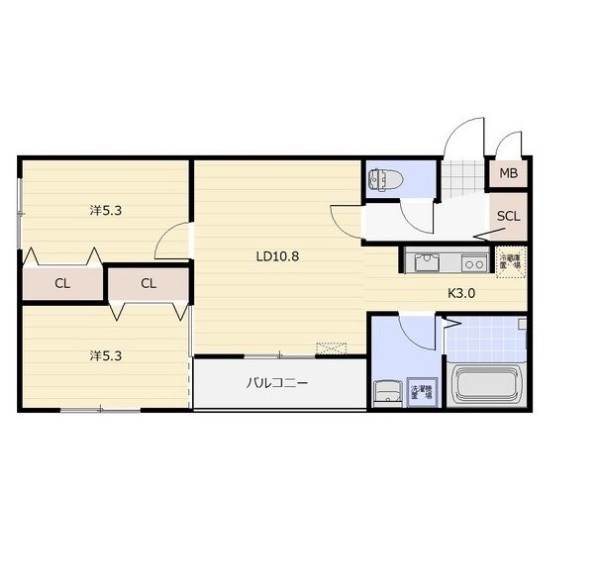 2LDK(52.68m²)└ LDK10.8帖 K3帖 洋室5.3帖 洋室5.3帖