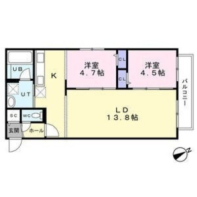 2LDK(56.16m²)└ LD13.8帖 洋室4.5帖 洋室4.7帖