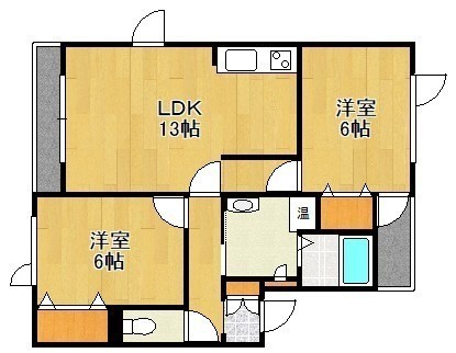 2LDK(63.97m²)└ LDK13帖 洋室6帖 洋室6帖