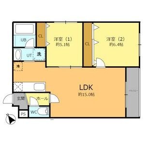 2LDK(56.01m²)└ LDK15帖 洋室6.4帖 洋室5.1帖
