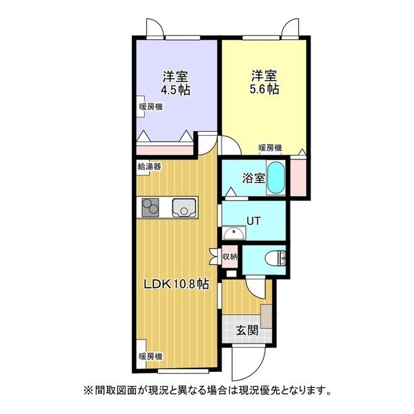 2LDK(48.74m²)└ LDK10.8帖 洋室5.6帖 洋室4.5帖