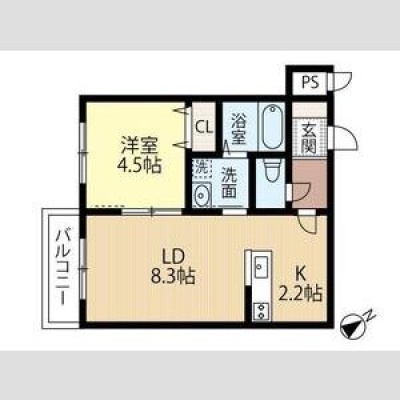 1LDK(34.16m²)└ LD8.3帖 K2.2帖 洋室4.5帖