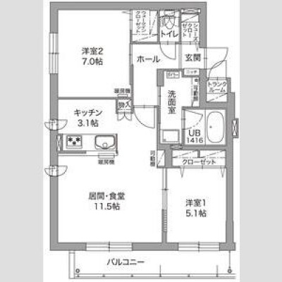 2LDK(61.65m²)└ LD11.5帖 K3.1帖 洋室5.1帖 洋室7帖