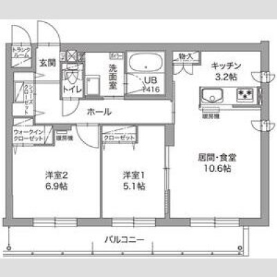 2LDK(61.47m²)└ LD10.6帖 K3.2帖 洋室5.1帖 洋室6.9帖