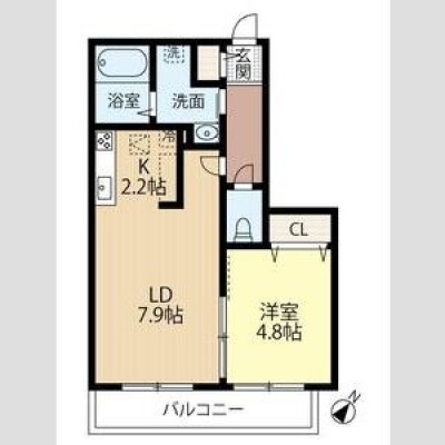 1LDK(35.34m²)└ LD7.9帖 洋室4.8帖 K2.2帖