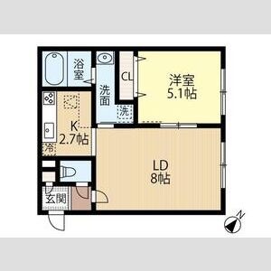 1LDK(35.28m²)└ LD8帖 K2.7帖 洋室5.1帖