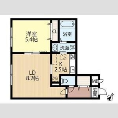 1LDK(36.78m²)└ LD8.2帖 K2.5帖 洋室5.4帖