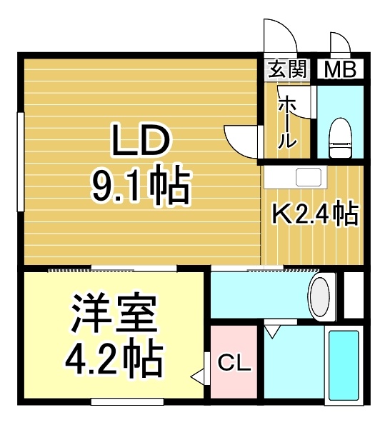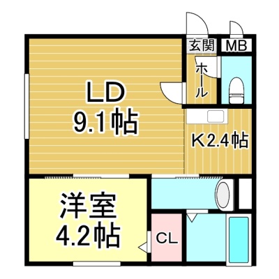 1LDK(34.42m²)└ LD9.1帖 K2.4帖 洋室4.2帖