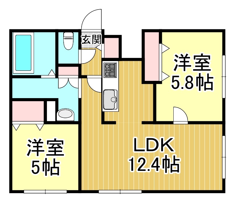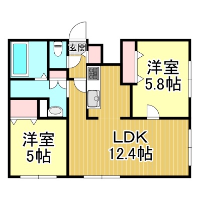 2LDK(50.28m²)└ LDK12.4帖 洋室5.8帖 洋室5帖