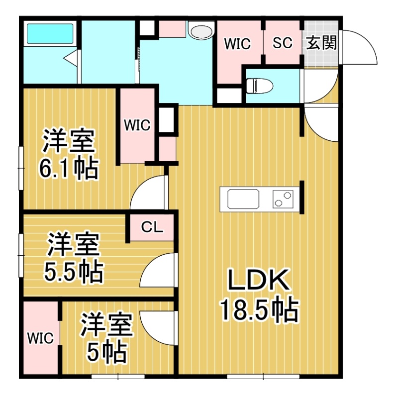 3DK(81.4m²)└ LDK18.5帖 洋室6.1帖 洋室5.5帖 洋室5帖