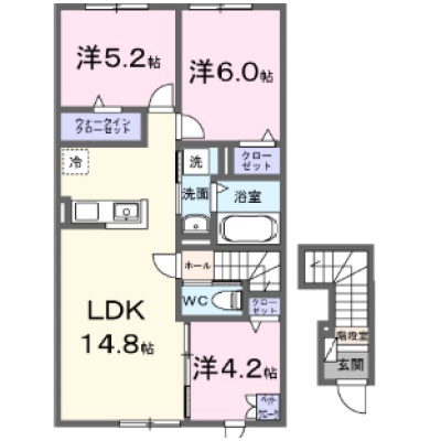 2LDK(66.29m²)└ LDK14.8帖 洋室6帖 洋室5.2帖 洋室4.2帖