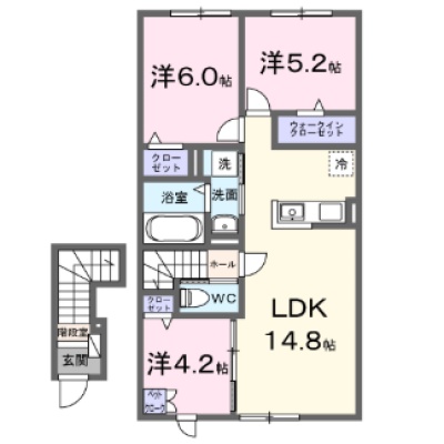 2LDK(66.29m²)└ LDK14.8帖 洋室6帖 洋室5.2帖 洋室4.2帖