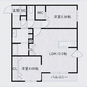 2LDK(53.22m²)└ LDK12.5帖 洋室5.36帖 洋室4.09帖