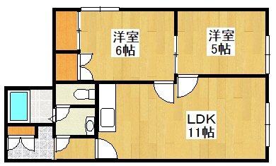 2LDK(46.39m²)└ LDK11帖 洋室6帖 洋室5帖