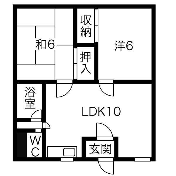 2LDK(45.5m²)└ LDK10帖 洋室6帖 和室6帖