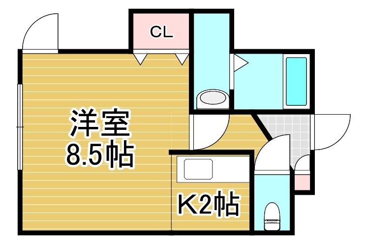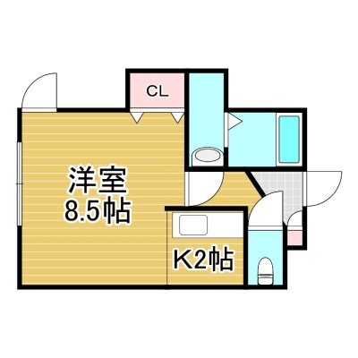 1K(26.44m²)└ 2階:洋室8.5帖 K2帖