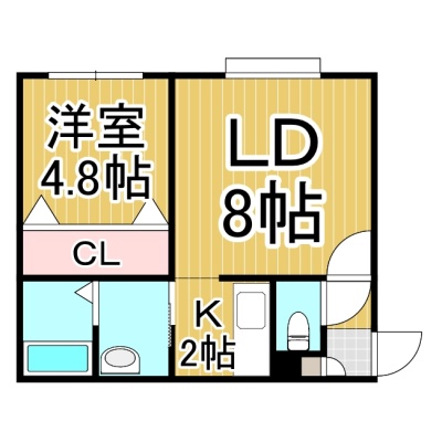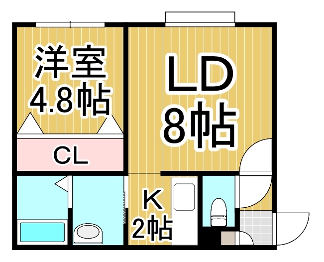 1LDK(34.02m²)└ DK8帖 K2帖 洋室4.8帖