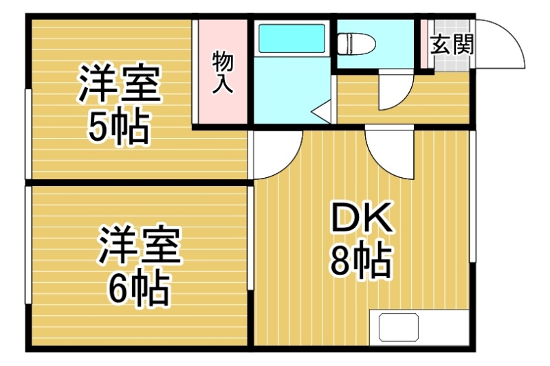 2DK(38.88m²)└ DK8帖 洋室6帖 洋室5帖