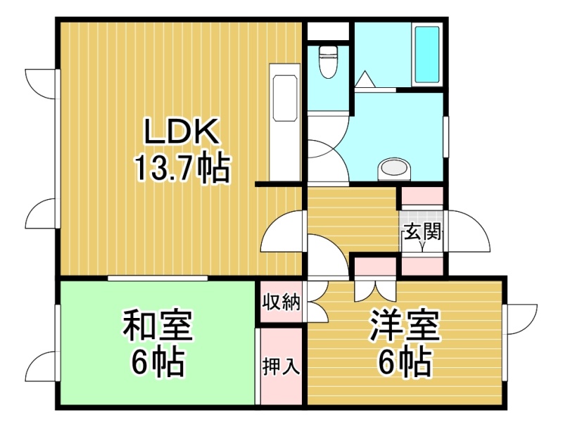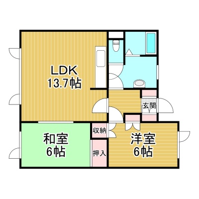 2LDK(58.79m²)└ LDK13.7帖 洋室6帖 和室6帖