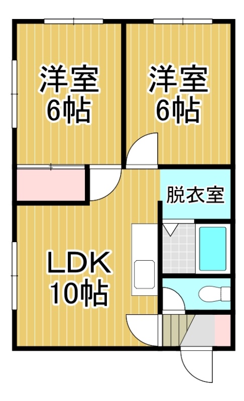 2DK(43.74m²)└ DK10帖 洋室6帖 洋室6帖