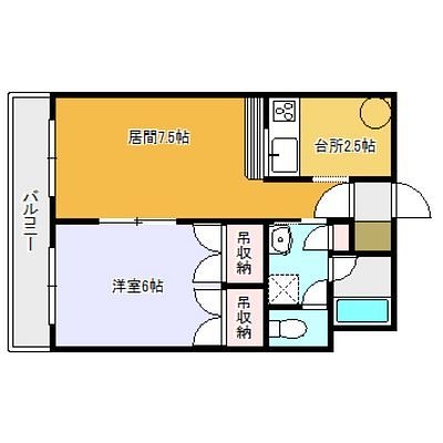 1LDK(33.4m²)└ 2階:LD7.5帖 K2帖 / その他:洋室6帖