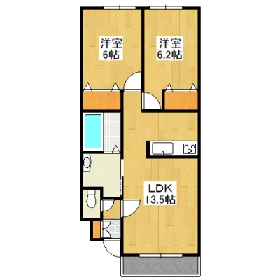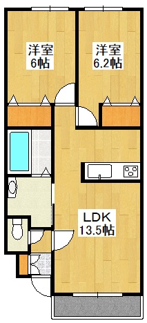 2LDK(56.18m²)└ LDK13.5帖 洋室6.2帖 洋室6帖