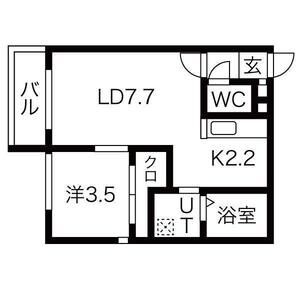1LDK(31.05m²)└ LD7.7帖 K2.2帖 洋室3.5帖