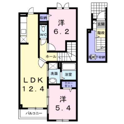 2LDK(60.86m²)└ LDK12.4帖 洋室6.2帖 洋室5.4帖