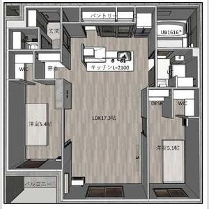 1LDK(61.74m²)└ LDK17.3帖 洋室5.4帖 洋室5.1帖