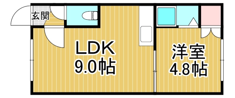 1LDK(27.4m²)└ LDK9帖 洋室4.8帖