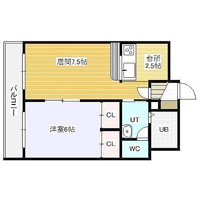 1LDK(33.8m²)└ LD7帖 K3帖 洋室6帖