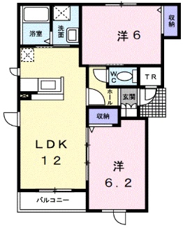 2LDK(52m²)└ 2階:LDK12帖 洋室6.2帖 洋室6帖