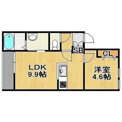 1LDK(37.41m²)└ 3階:LDK9.9帖 洋室4.6帖