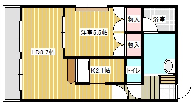 1LDK(37.2m²)└ LD8.7帖 K2.1帖 洋室5.5帖
