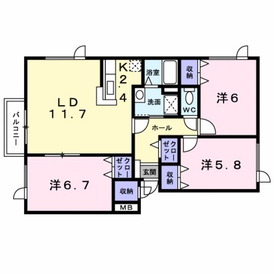 3LDK(71.84m²)└ LD11.7帖 K2.4帖 洋室6.7帖 洋室6帖 洋室5.8帖