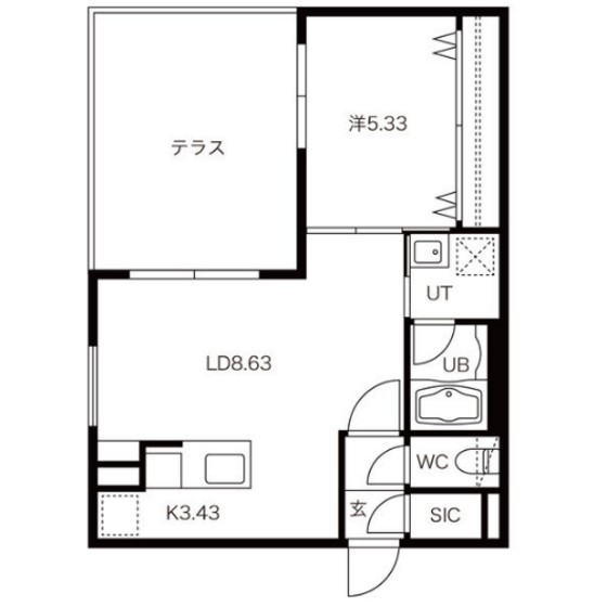 1LDK(40.07m²)└ LD8.63帖 K3.43帖 洋室5.33帖 / LD8.63/K3.43/洋室5.33