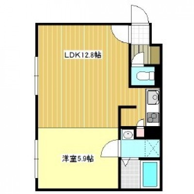 1LDK(38.56m²)└ 2階:LDK12.8帖 / その他:洋室5.9帖 / LDK12.8/洋室5.9