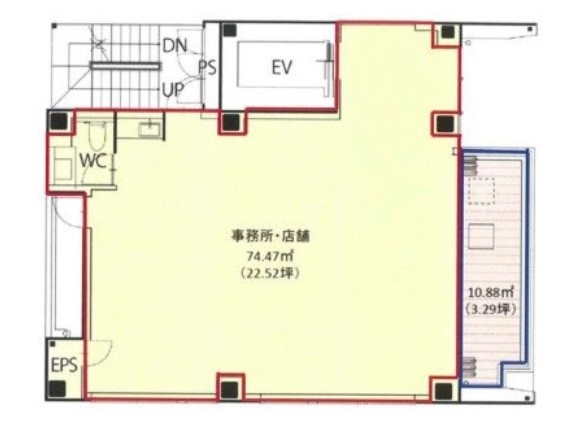 備考 飲食店可(軽飲食のみ)/カラオケ相談可(防音対策必須) OAフロア(天高2,850mm)個別空調 ※青枠内(バルコニー10.88㎡)は契約面積には含みません。 ※写真は新築竣工時の物になります。 主な周辺施設色がついているアイコンをクリックすると、本物件までの道順を見ることができます。