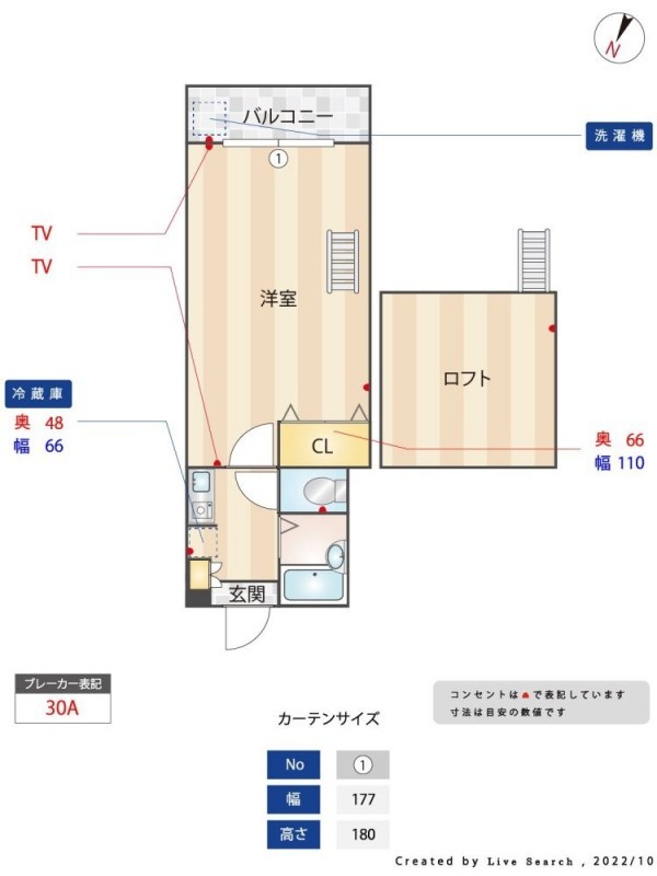 - その他:ガスキッチン・トイレ/バス別・シャンプードレッサー・公共下水・エアコン・BS・CS・CATV・室内洗濯機置場・バルコニー・上下水道・電気