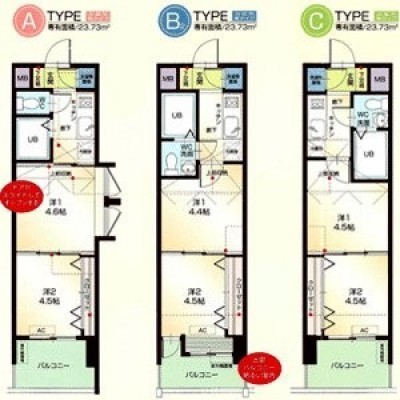 2K(23.73m²)└ 洋室4.4帖 洋室4.5帖