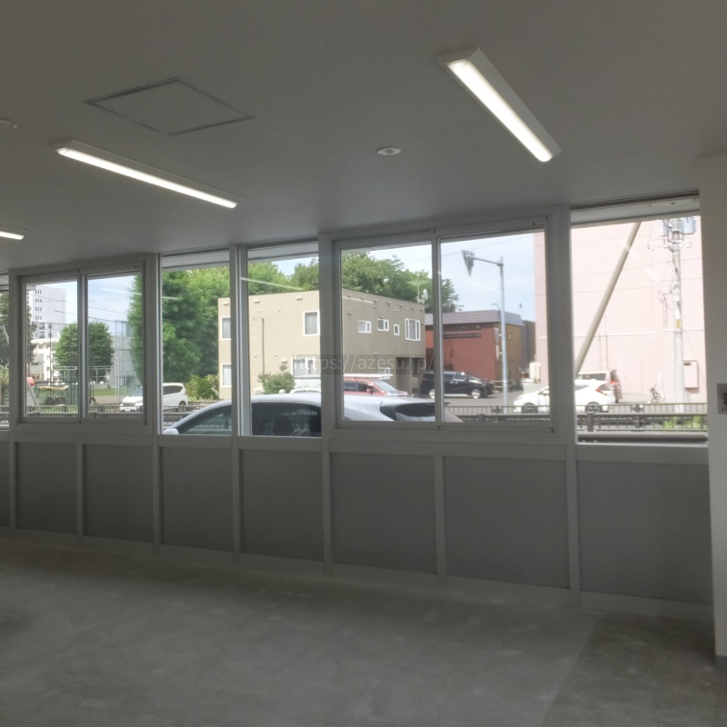 - 前面ガラス張り